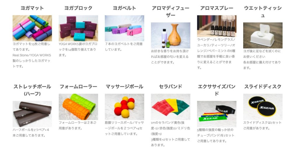 YOGA WORKS製のヨガブロックを14個レンタルが可能です。