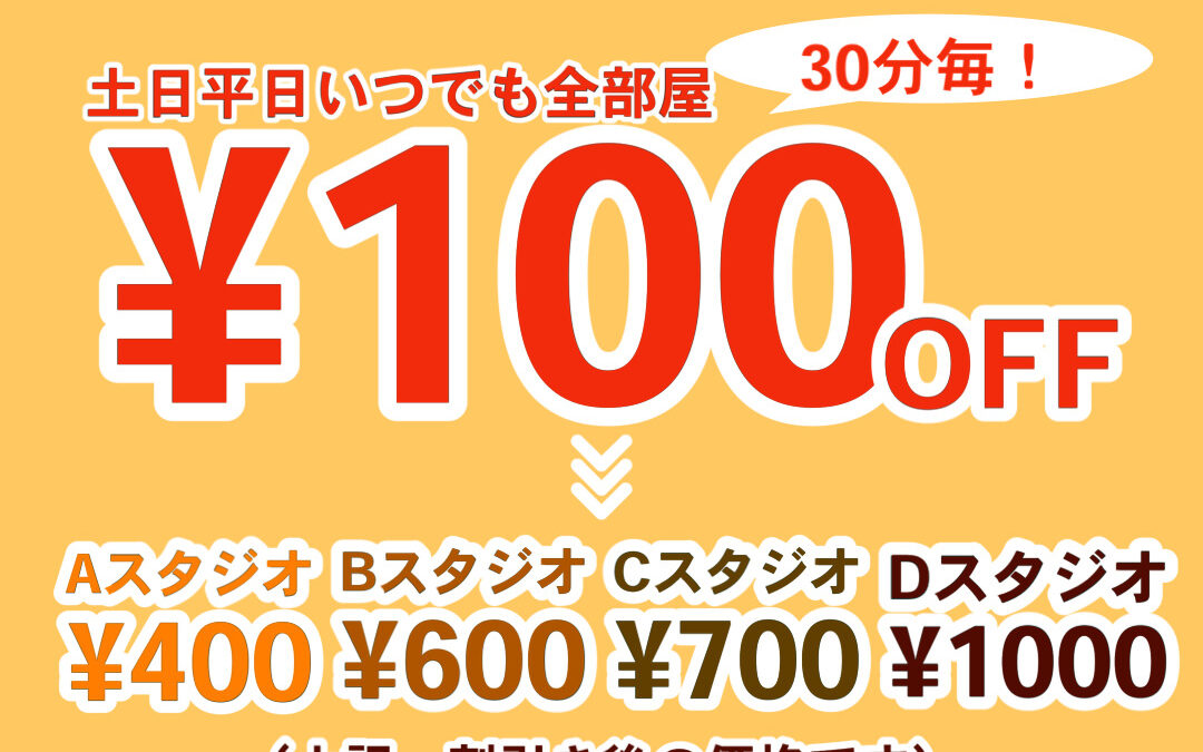 緊急事態宣言明けラストスパート、みなさんが舞台に戻るまでサポートできればと思い、全てのお部屋の料金を渋谷のどのスタジオよりも安くご利用できる価格に設定しました。