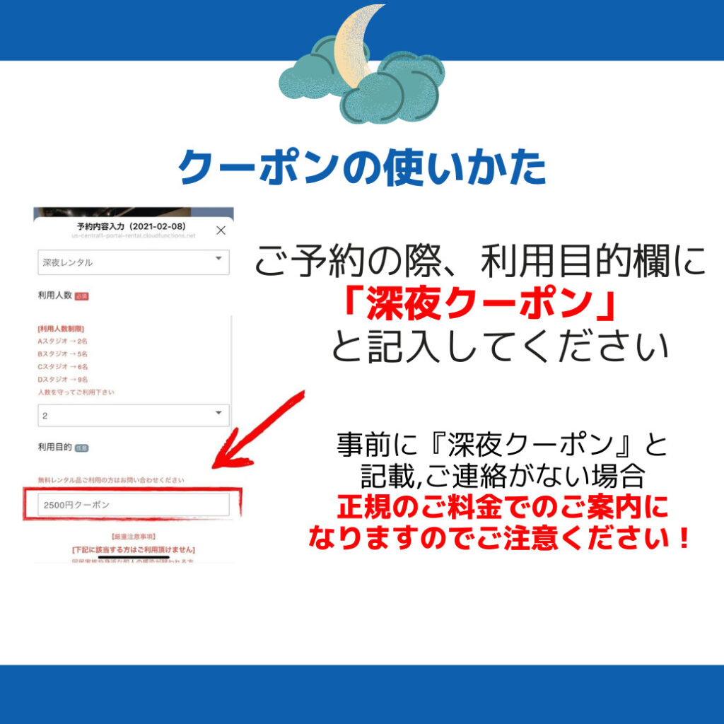 渋谷のスタジオで1番お得な深夜クーポン配布中!(11/14まで延長決定)